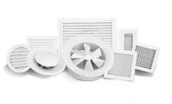 2、单层百叶风口,单层百叶风口可调上下风向,回风口可与风口过滤网合用,节片角度可以调节,叶片间有ABS塑料固定支架。